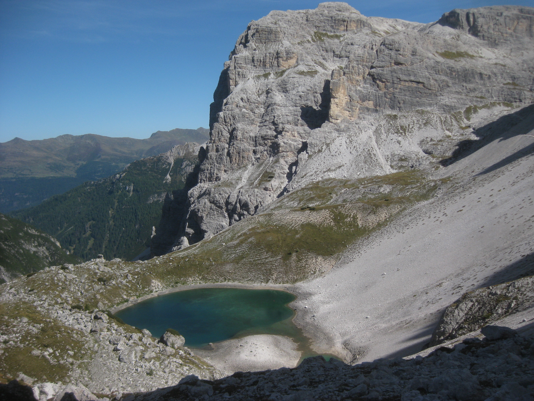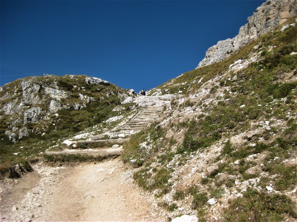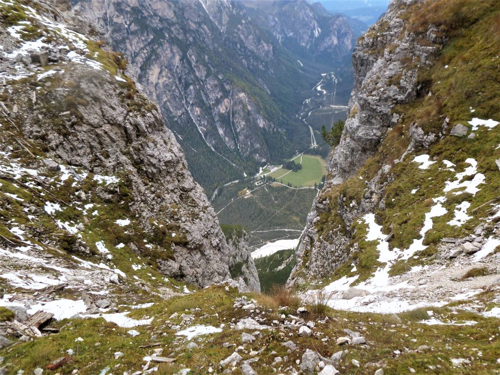 Per il ritorno si può fare dallo stesso oppure proseguendo con il sentiero 102 verso forcella di Cengia 2522 m, e poi fino al Rifugio Locatelli Innerkofler 2405 m. passando per i laghi dei piani , poi si scende sempre attraverso il sentiero 102 Val Sassovecchio e scendere così fino al Rifugio Fondovalle 1548 m.