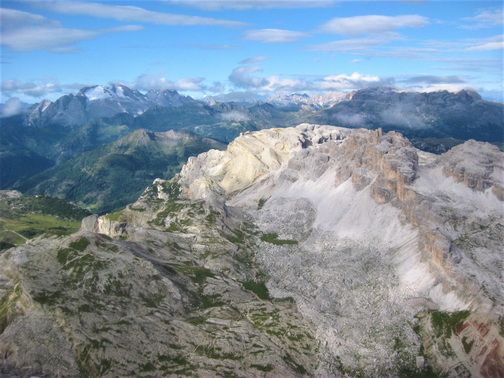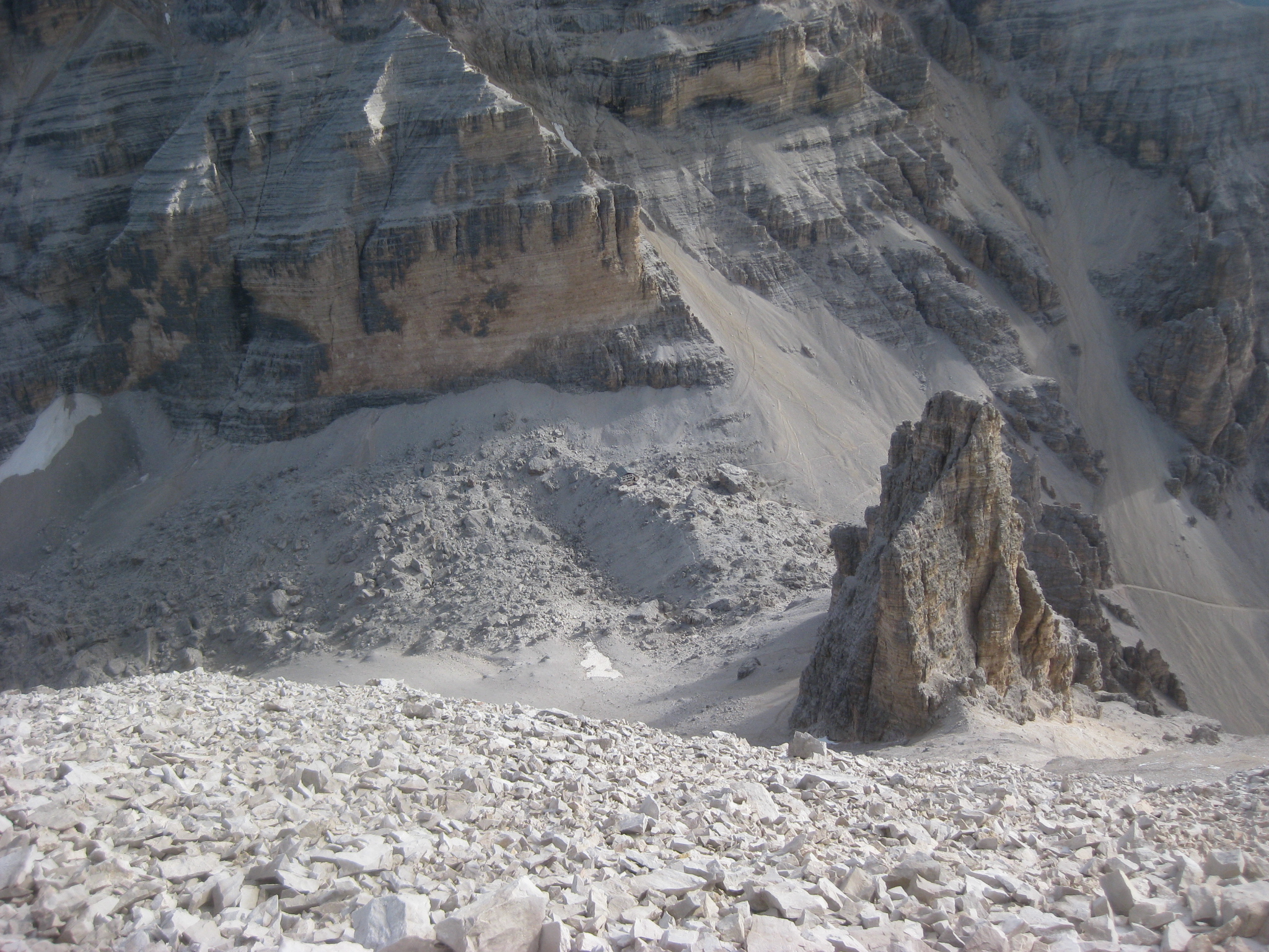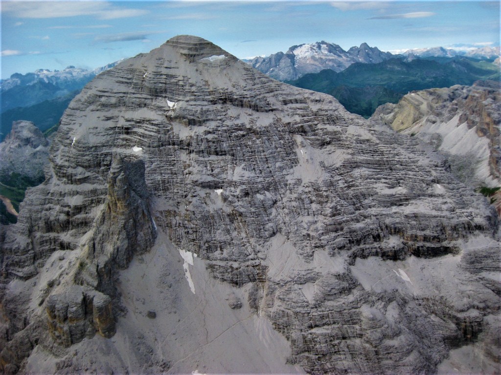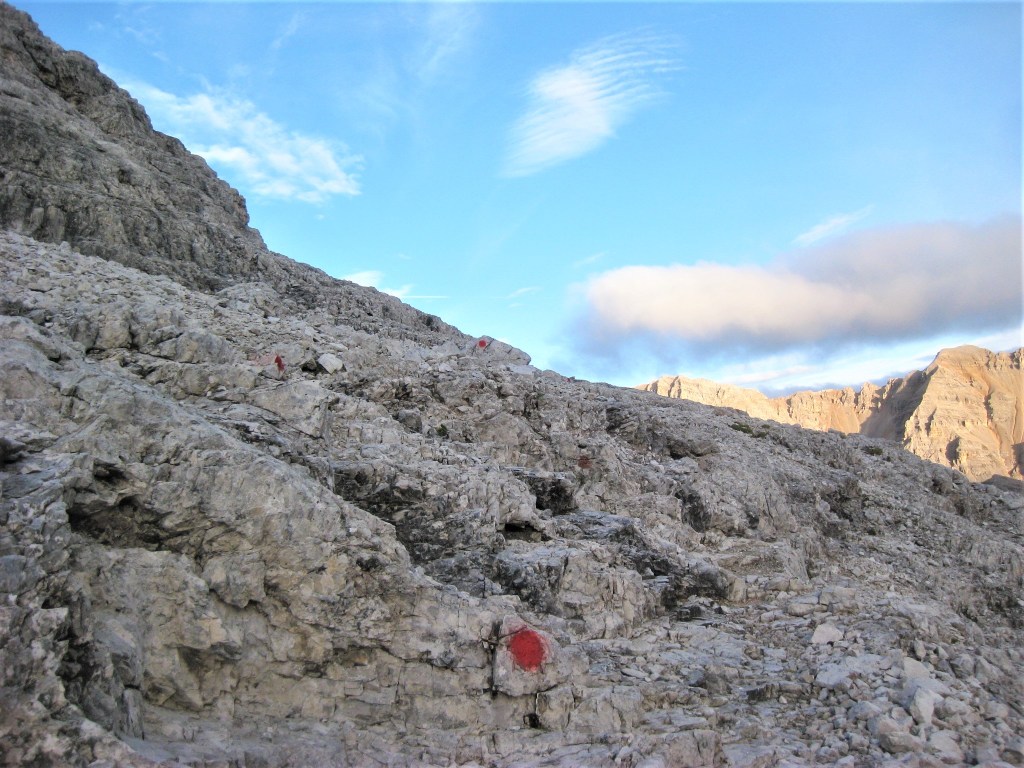 Il percorso di questa via normale non presenta grosse difficoltà anche se molto poco segnalato è molto intuitivo , si prende il sentiero che arriva al Giussani 2600 m dalla Postazione Tre Dita , una posizione che domina su tutta la val Travenanzes , ad un primo bivio si inizia salire in maniera importante su ghiaioni detritici e spunti di roccia stabile in cui la presenza frastagliata della stessa crea gradini quasi naturali su cui inerpicarsi , il dislivello partendo dal Giussani e abbastanza lieve di circa 600 m, la presenza di sole estivo rende la via più complessa visto la totale assenza di piante ed ombra , continuando a salire con tratti di ghiaioni e roccette si raggiunge la cresta è si procede sul versante sinistro con su ghiaioni e sentiero segnato dal continuo andirivieni degli escursionisti , per chi invece volesse cimentarsi nella parte finale della Ferrata Lipella proseguendo perla postazione Tre Dita si entrerà nella Ferrata per completare i circa 300 metri e raggiungere i ghiaioni che porteranno direttamente sulla vetta rientrando così sulla via normale che sale dal Giussani , per quanto riguarda la ferrata Lipella è documentata in altro post visto la sua lunghezza . Comunque soggiornando la notte in rifugio ci sarà tutto il tempo per salire e scendere con tranquillità e sicurezza anche fino all’auto .