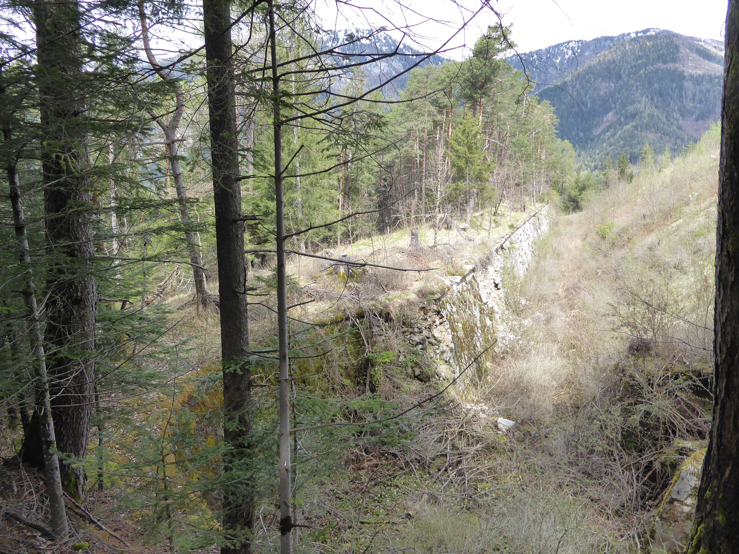 Fu costruito prima del 1885. Scopo principale dell’opera era di controllare la valle del Boite nel tratto di strada verso Tai. Esso aveva una facciata diritta, con profilo di terrapieno e parapetto di 8 metri, suddiviso in 4 parti da 5 traverse cave, e con l’asse principale diretto verso Venas. Su ciascuna delle piattaforme scandite dalle traverse potevano essere collocati due cannoni di medio calibro, mentre la parte compresa tra l’ultima traversa di destra ed il punto di spalla era attrezzata per la difesa della fanteria e consentiva pure l’uso di cannoni da campo. I due fianchi non erano paralleli tra loro e non evidenziavano particolari difese sulla copertura. Dal fianco sinistro e dalla gola la difesa poteva venir effettuata dalle casematte, mentre sulla facciata e sul fianco destro si poteva operare da un camminamento protetto da un parapetto: solo all’estremità, dove il fianco destro si congiungeva alla facciata, erano state ricavate delle casematte. Tutti i locali dei fianchi e della gola erano comunicanti tra di loro e con le casematte della facciata, nonché colle traverse cave e il camminamento di comunicazione ricavato all’interno del parapetto. Una rampa portava dallo stretto cortile interno al piano di copertura, da cui si poteva raggiungere il terrapieno o attraverso il terrazzo del fianco sinistro, o attraverso un ponte armato che oltrepassava a destra il cortile. Alla facciata era anteposto un fossato largo 8-10 metri, chiuso a nord da un muro a picco su un pendio scosceso, con una scarpa inclinata ed una controscarpa in muratura liscia alta 5 metri. Davanti al fossato si trovava una spianata larga 10 metri, ben visibile anche da lontano e simile ad un potente terrapieno inclinato nella parte anteriore , murato nella parte destra ed alto circa 30 metri nella parte più elevata. Davanti al fianco sinistro, come pure per metà della gola, compresa la caponiera, correva un fossato d’impedimento largo 5 metri ed altrettanto profondo, con controscarpa in muratura. Dal fianco destro e dalla parte destra della gola l’inaccessibilità veniva garantita da una controscarpa in muratura, mentre il fossato della facciata e del fianco sinistro veniva difeso da uno sporto (caponiera) di spalla dotato di 6 aperture, delle quali due verso il fossato della facciata ed una verso quello del fianco. Tutte le aperture erano costruite a mo’ di piombatoio (= caditoia) per agevolare la difesa della base stessa del muro, e la copertura era costruita con lastre di granito. Gli Austriaci erano convinti che le aperture fossero state costruite per l’impiego di cannoni a tiro rapido. Alla difesa del fianco destro era preposta pure nel punto di spalla una semicaponiera d’angolo, costruita su una ripida roccia e difendibile dal terrapieno superiore; essa era fornita di due piombatoi per la copertura della scarpa e della gettata di ghiaia e pietrame ad essa antistante. La gola veniva difesa invece da una caponiera a due piani dotata di aperture in ogni direzione, presumibilmente progettata anch’essa per l’installazione di cannoni a tiro rapido. Davanti al fianco destro e alla gola era stata ricavata una spianata di sassi e ghiaia, il cui punto più alto superava il livello del terreno naturale di 40 m circa in corrispondenza del punto di spalla destro, di 30 m circa nel punto di gola destro e di 15 m circa nel punto di gola sinistro. Il fossato di gola era attraversato da un ponte rilevabile che permetteva l’accesso all’entrata principale, sbarrata da un portone di legno coperto di lamiera di ferro, e quindi al cortile e agli adiacenti vani delle numerose casematte. Il magazzino principale delle munizioni, si trovava a destra della caponiera della gola e sotto il livello del cortile, scavato nella viva roccia con mine. Si pensa che tale magazzino fosse in comunicazione con i vani delle casematte poste sotto la facciata mediante una postierla ed una scala, e che tramite gli elevatori posti lungo il camminamento interno le munizioni venissero direttamente portate alle piattaforme dei cannoni. Per l’approvvigionamento dell’acqua esisteva poi sotto le casematte site a destra dell’ingresso principale esisteva una grande cisterna capace di 550.000 litri. La prerogativa del forte era un marcato effetto frontale. La facciata prendeva d’infilata la valle del Boite e la carrabile da Valle di Cadore alla stretta de La Chiusa, mentre sulla sponda sinistra del torrente copriva i pendii e la strada d’accesso a sud dei fienili Costa Piana. Non era compresa però la svolta della strada presso Vallesina, mentre sulla sponda destra del Boite venivano coperti i rocciosi pendii difficilmente percorribili posti di fronte alla confluenza del Rio Vallesina, ed inoltre la spianata su cui sorgevano i fienili Piano di Sotto. Il fianco destro copriva la zona circostante il Rio Secco ed i pendii di Nebbiù e Vissa, e la sella di Tai: a tal proposito gli Austriaci ritenevano molto probabile il piazzamento di cannoni su affusti girevoli fissi in corrispondenza delle luci delle casematte del fianco e della gola. Il fianco sinistro a sua volta prendeva sotto tiro radente dalle finestre delle casematte i pendii che dalla sommità rocciosa di M. Zucco digradano verso nord fino alla strada d’accesso. La gola poi copriva i pendii a nord di M. Zucco e la strada d’accesso al forte proveniente da Tai, compresa la diramazione per Ciaupa. Il presidio in caso di guerra prevedeva 1/2 o 3/4 di compagnia di fanteria e 60-70 artiglieri.