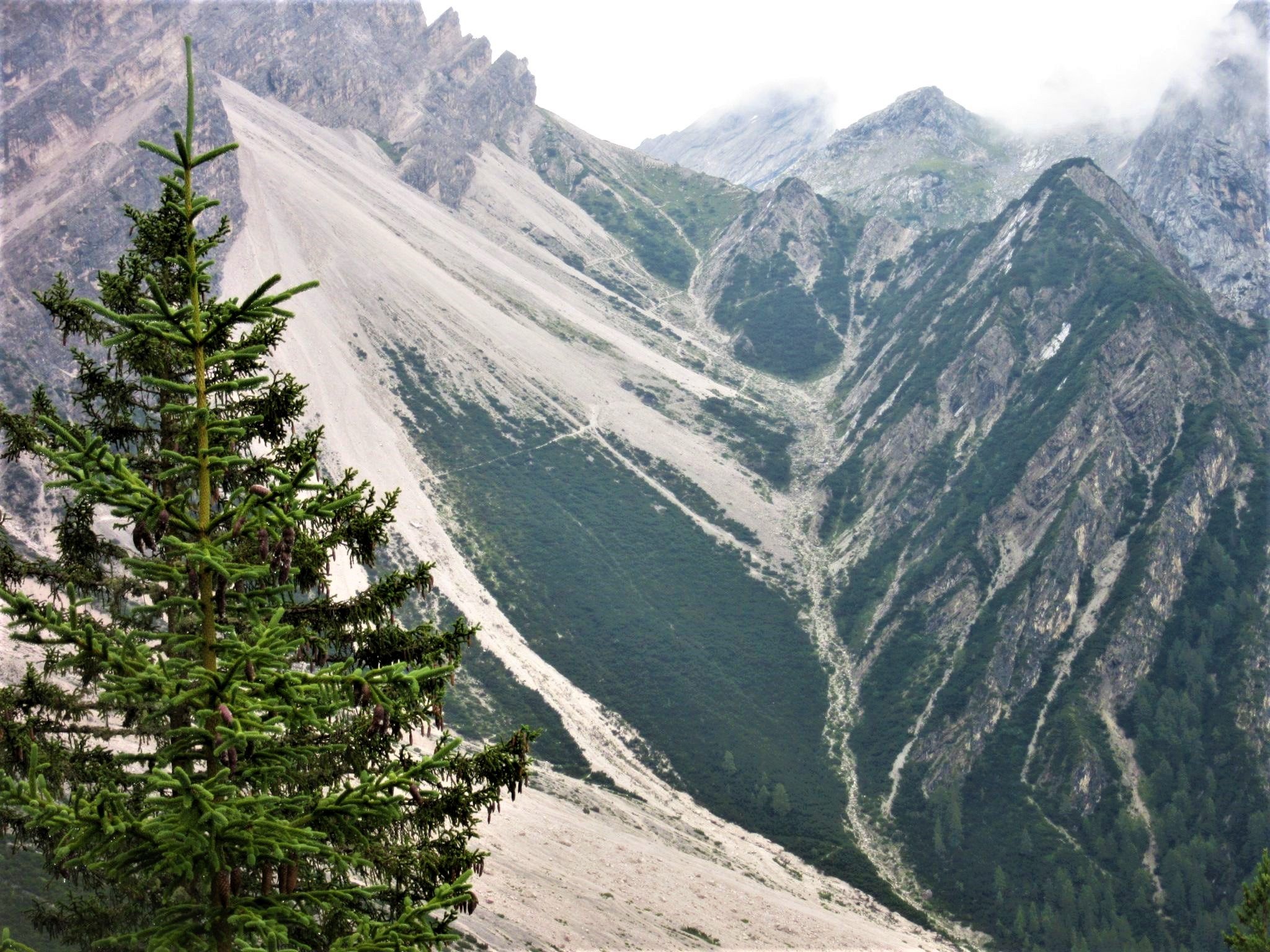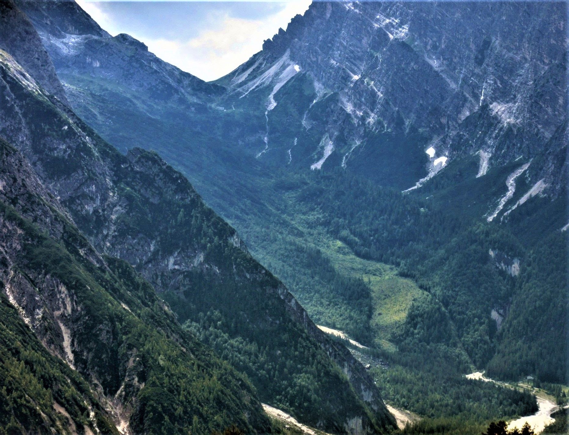 Si parte dal Rifugio dopo una buona colazione, imboccando il n.226 che sale verso la Forcella Grande 2255 m attraverso un stretto canalone che porterà su una forcella spettacolare , sul fianco destro la maestosa Torre dei Sabbioni , mentre sulla sinistra sopra i ghiaioni la Cima del Sorapis 3205 m e della Crode della Caccia 3002 m , si inizia a scendere per la valle di San Vido , qui la valle è molto ampia , si incrocia anche il bivio per l’Alta via N.3 segnavia n.246 e poi in seguito l’Alta via N.4 segnavia 247 sentiero Minanzio (che fa parte dell’anello del Sorapis) , continuiamo a scendere in questo scenario magnifico di mughi , alberi e quel torrente che pare giochi tra i sassi , si passa sotto la Cengia ed il Corno del Doge , dove una via attrezzata alpinistica ci ruota attorno , la discesa è abbastanza semplice e gradevole anche se la sua lunghezza è notevole , la valle si restringe e si passa in un pezzo un pò più complesso sotto il Ciadin del Doge , la valle si restringe tra pareti strapiombanti quasi da fare mancare il fiato , nel suo zigzagare dentro la Val del Fuogo , fino a raggiungere più in basso la Riserva Naturale della Foresta di Somadida , inutile descriverla …non ne saremmo mai capaci davanti questa bellissima e protetta oasi paludosa , si scende ancora fino a superare il Ponte degli aceri , poi il Ponte Piccolo e raggiungere cosi il Ponte degli Alberi , dove si potrà incrociare la strada 48 che porta ad Auronzo di Cadore mentre poco più avanti si potrà trovare la fermata dell’autobus che porta ad Auronzo .