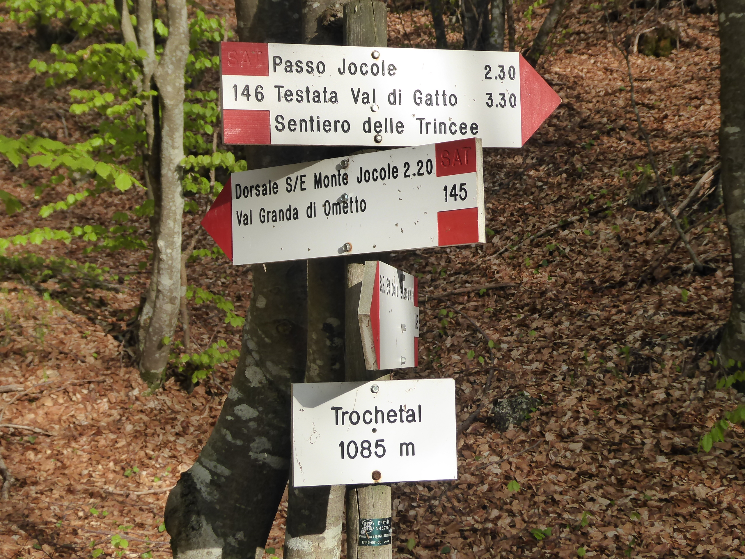 Il ritorno può essere fatto raggiungendo prima il passo Jocole, attraverso il 146 sentiero delle trincee e poi attraverso il 146 ridiscendere a valle.