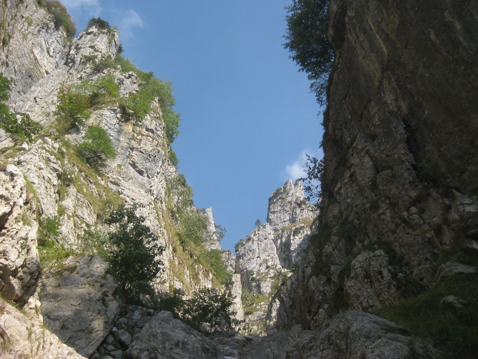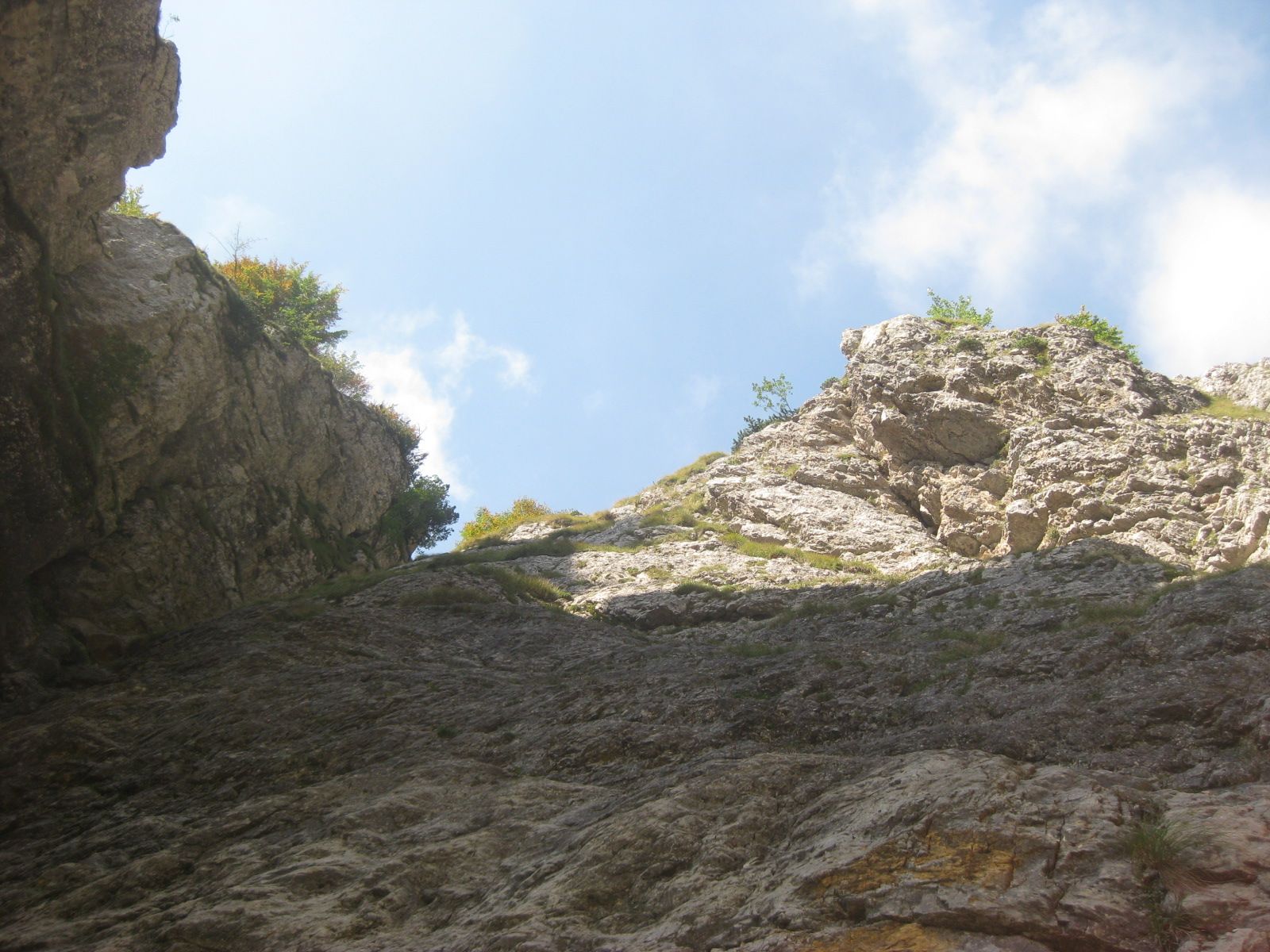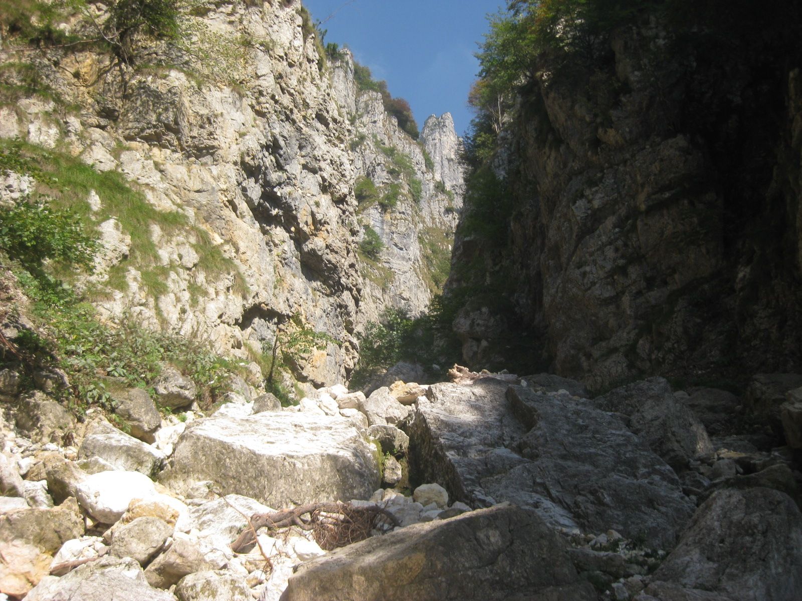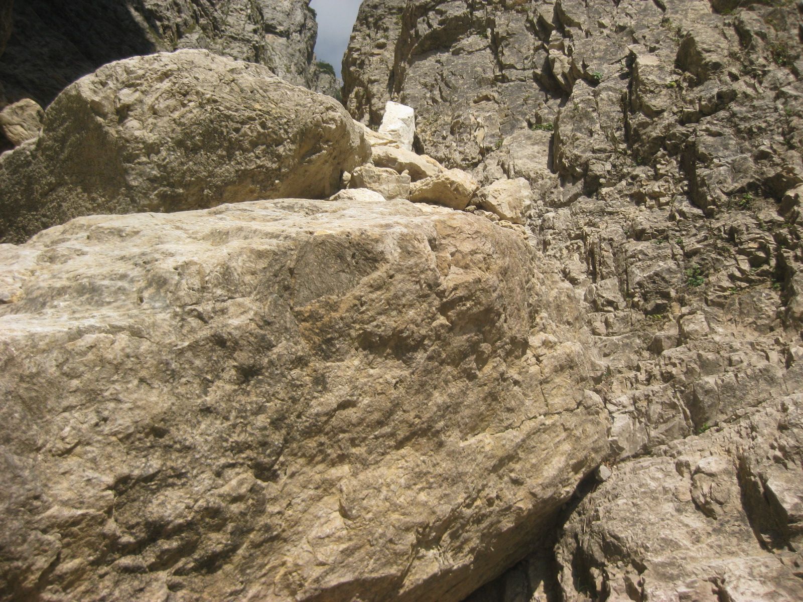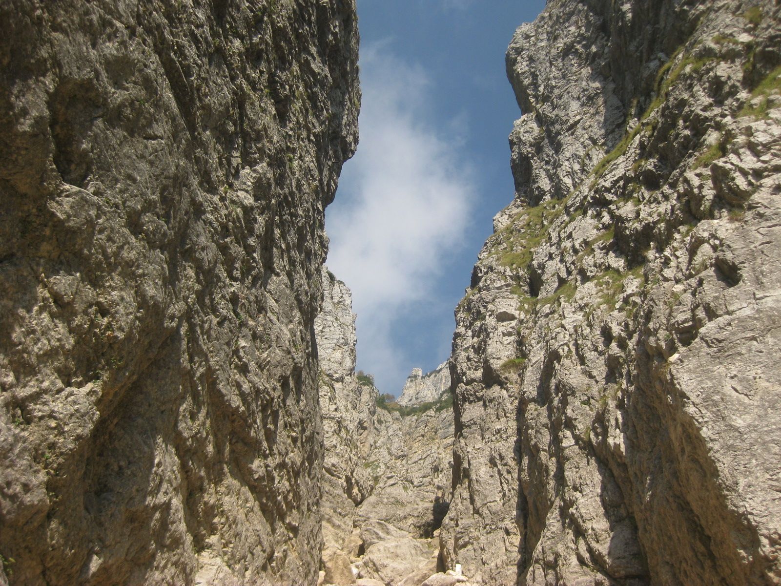 Lasciato il rifugio Campogrosso 1464 m, si prosegue verso la strada delle 7 fontane per circa 150 m fino a raggiungere il segnavia n.157, e la Madonnina a mezzo busto dove è riportata una frase molto significativa «che il Signore fermi le Guerre», ricordo inoltre che qui passava, l’antico confine Austroungarico segnato dai Grandi Cippi, entrati nel sentiero si nota sulla sinistra anche l’Anello Storico della Guerra, il sentiero si snoda nel boschetto attiguo al Passo Buse Scure 1475 m, il bivio porta sulla sinistra ad imboccare il n.144, che porta alla Guardia attraverso il Sentiero delle Mole, il percorso prosegue quasi in maniera circolare transitando sopra la cresta della Frana del Rotolon, si esce parzialmente dal bosco incrociando prima il n.195 Sentiero delle Creste del Fumante, poi proseguendo sui ghiaioni e sotto le pendici di alcune Guglie si transita sul Giaron della Scala e del Prà degli Angeli anche se poco visibile dal basso, raggiunta la Torre Giordani, si incrocia il n.157A, poco usato che sale dalla strada per Camposilvano, poi il bivio a quota 1690 m. con il n.158 del Vajo dei Colori, esiste inoltre un itinerario diretto al Vajo, prendendo la strada che dal Passo Campogrosso 1464 m scende verso località Ometto, giunti sul secondo ponte si nota sulla diretta il vajo dei colori, che sale fino a bocchetta Mosca, questo percorso è poco usato visto che la strada per Ometto è divieto di transito. Dal bivio si scende un po’ per aggirare il gruppo della Cima Mosca 2141 m, sfino a raggiungere la selletta dei Contorni 1650 m, il percorso scende fino a quota 1550 m, per poi risalire nel canale detritico del Vajo che sale tra grossi e piccoli massi, a breve si raggiunge il bivio a circa 1700 m, con un altro itinerario tra i più belli e complessi delle piccole dolomiti, il Vajo dei Camosci, noi proseguiamo a sinistra, su un primo tratto di ghiaioni, poi il percorso si restringe in un stretto canalino, raggiungendo poi un tratto attrezzato che transita su di un traverso roccioso e stretto, si sale ancora intravedendo il cielo tra due enormi pareti rocciose, raggiungendo così Bocchetta Mosca 2029 m. Da qui si può salire sia al Rifugio Mario Fraccaroli 2238 m, oppure ridiscendere a Campogrosso 1464 m.