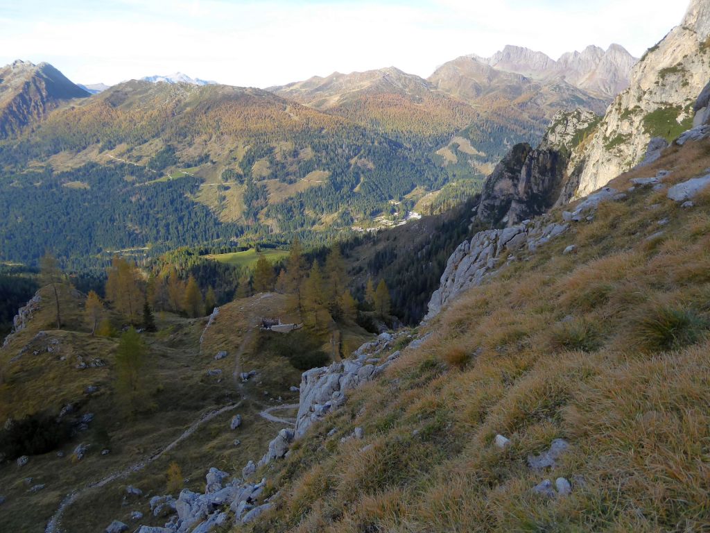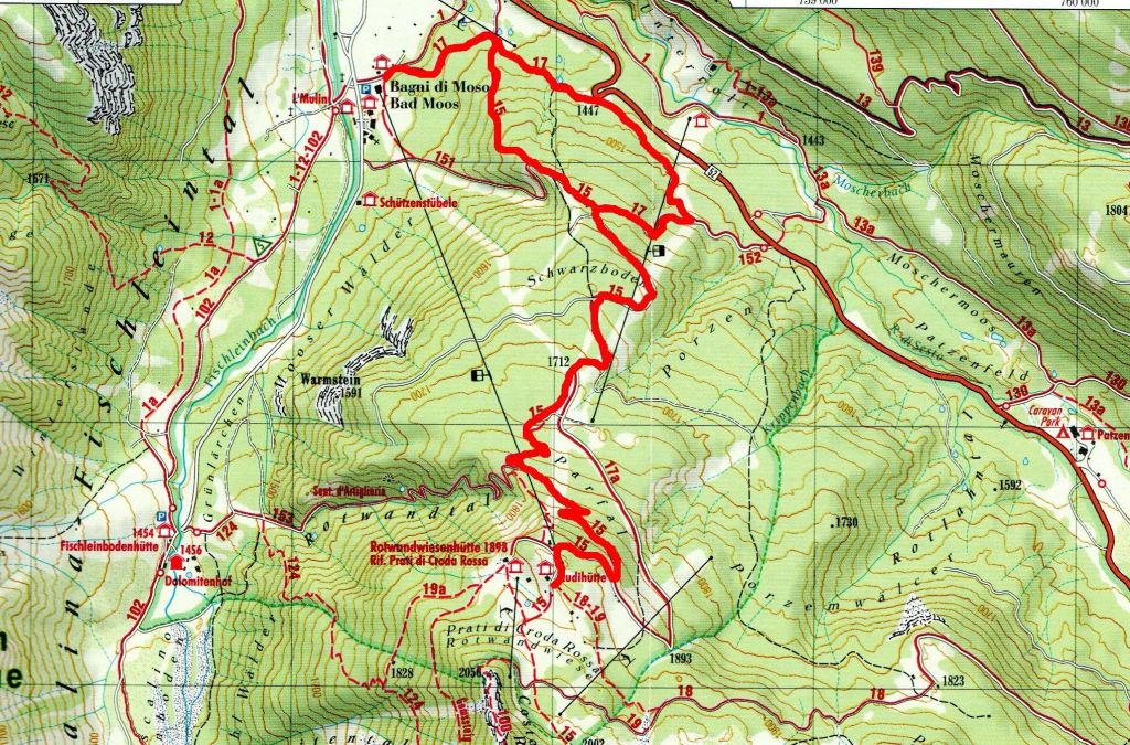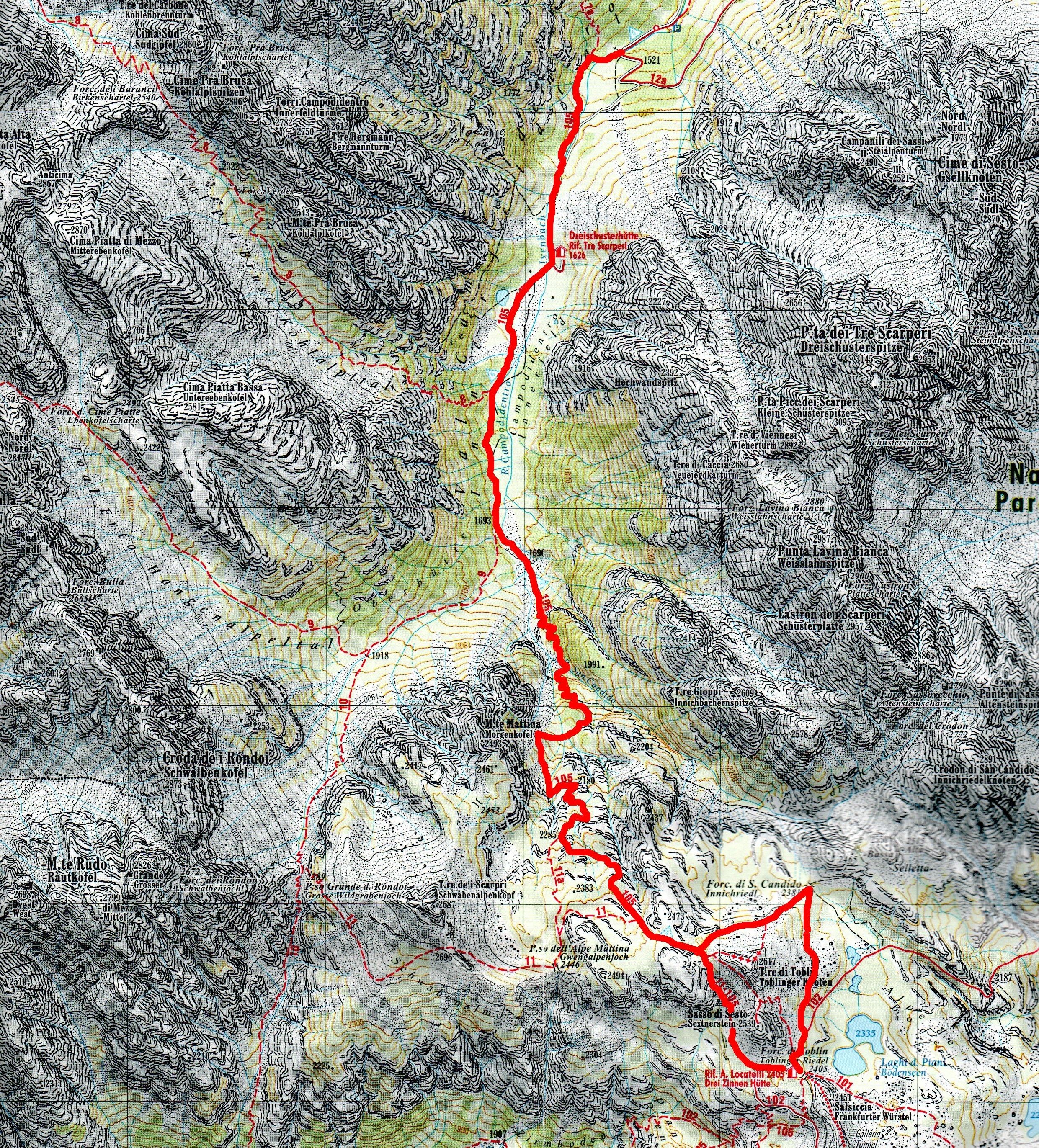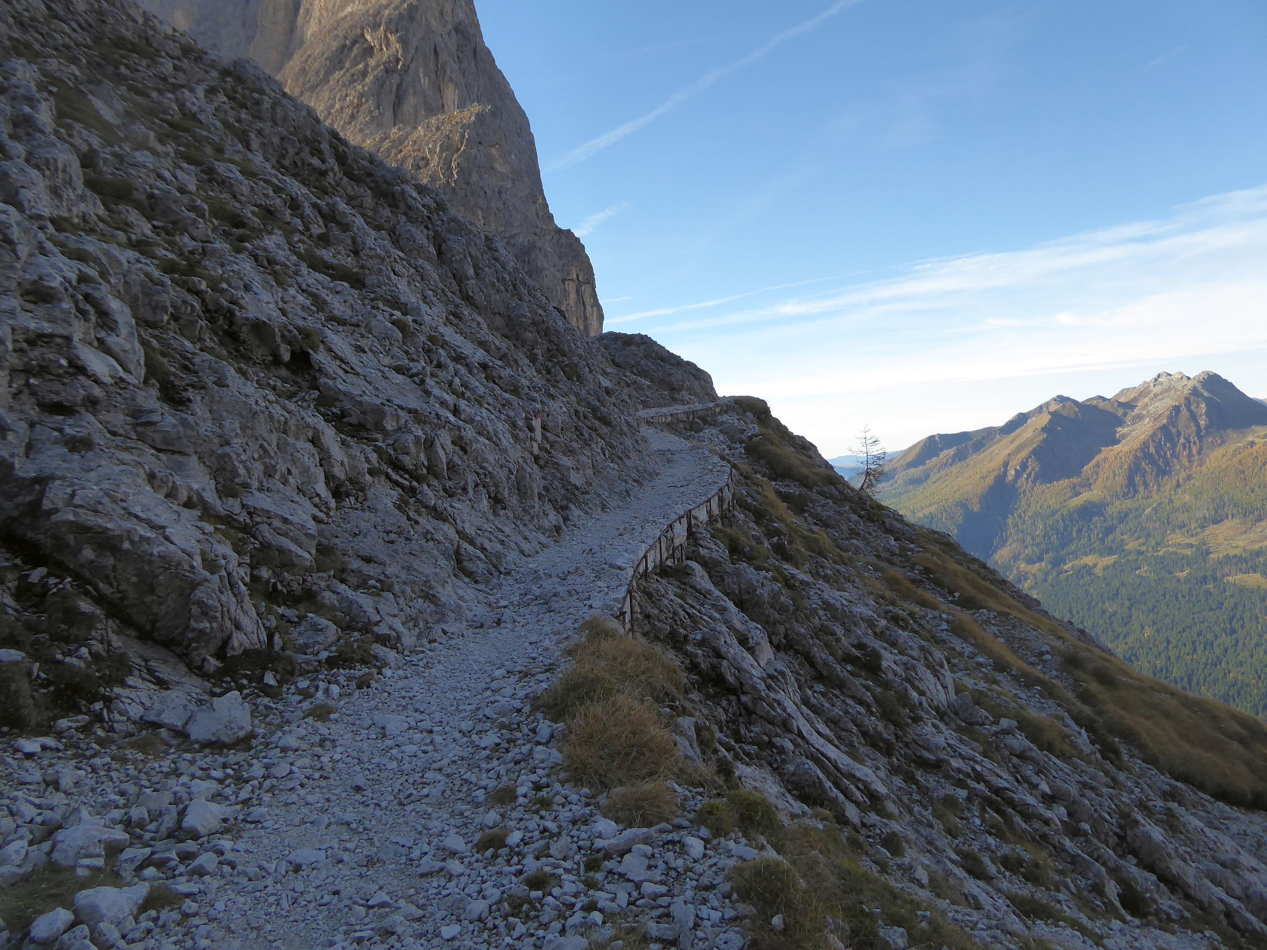 Dall’abitato di Andraz , piccola località dell’omonimo Castello, si imbocca il sentiero n°21, che nella prima parte non risulta più in uso e nemmeno segnalato che passa tra le reti paraneve, si sale a zig zag un po ad occhio fino a raggiungere il piccolo abitato di Agai , da li attraverso il sentiero teriol landin è proseguendo poi con il n°21 si sale verso il Cengei 2221 m, con il sentiero n°38 passando per il crinale si sale sulla cima attraverso il fianco destro del Col Di Lana 2452 m. Salita molto bella su un crinale in cui ci sono state numerosi combattimenti , mentre sulla cima si ammira il passo Falzarego, il Sass di stria , il Lagazuoi il forte Tre Sassi , sulla destra il pianoro del Passo Giau. si prosegue per l’ultimo tratto che ci porterà al bivacco Brigata Alpina Cadore e alla chiesetta, in una vastità di praterie e rocce molto simili all’alta via del granito del Lagorai , raggiunta la quota si prosegue a destra per il Dente Sief 2308 m ed lo Spitz delle Seleghe, si raggiungerà così il punto di scoppio delle mine, si riprende sulle creste raggiungendo prima il Monte Sief 2424 m e poi attraverso un breve saliscendi ed attraverso le trincee sul Passo Sief 2209 m dove ripiegheremo a sinistra dove incontrereno le rovine del fortino Khole. Si prosegue per un sentiero che attraversa in diagonale passando per due colline punti di riferimento della linea italiana ed austriaca . Si passa per i Ciadinei e poi Plan della Chicia e per poi rientrare attraverso parte di strada forestale fino all’abitato di Agai , da li si ripercorrerà il sentiero di salita a ritroso.