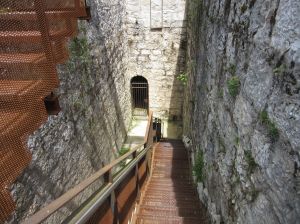 Un’irta scala porta nella parte superiore della torre: sulle pareti si leggono i nomi di tante montagne teatro di sanguinosi scontri e s’apprezzano numerosi e pregevoli affreschi.