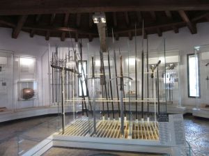 Il Santuario della Corona è luogo di silenzio e di meditazione, sospeso tra cielo e terra, celato nel cuore delle rocce del Baldo. Documenti medievali attestano che già intorno all’anno Mille nell’area del Baldo vivevano degli eremiti legati all’Abbazia di San Zeno in Verona e che almeno dalla seconda metà del 1200 esistevano un monastero ed una cappella dedicata a S. Maria di Montebaldo accessibili attraverso uno stretto e pericoloso sentiero nella roccia. Una pia tradizione collocava la nascita del Santuario della Madonna della Corona nel 1522, anno in cui la scultura qui venerata sarebbe stata miracolosamente traslata per intervento angelico dall’isola di Rodi, invasa dall’armata mussulmana di Solimano II, ma la datazione viene smentita dall’esistenza, nei recessi dell’attuale Santuario, di un dipinto di una Madonna con bambino, di fattura trecentesca, che costituì la prima immagine venerata nell’originaria chiesetta, che da essa prese nome. Tra il 1434 ed il 1437 S. Maria di Montebaldo, passò in proprietà ai Cavalieri di San Giovanni, o del Santo Sepolcro, presenti a Verona dal 1362 come commenda di San Vitale e Sepolcro, che conservarono la proprietà del Santuario fino allo scioglimento con provvedimento napoleonico nel 1806. A questo periodo sembra risalire il gruppo in pietra della Pietà poi venerata come Madonna della Corona. Alta 70 centimetri, larga 56 e profonda 25, la statua è in pietra locale dipinta. La statua poggia su un piedistallo recante la scritta “HOC OPUS FEClT FIERI LODOVICUS D CASTROBARCO D 1432”, tradizionalmente considerata come prova che la statua venne fatta realizzare e donata alla Corona nel 1432 da Lodovico Castelbarco, proveniente da una nobile famiglia roveretana. Nei quattro secoli di gestione, la Commenda trasformò radicalmente la Madonna della Corona, facendola diventare un autentico Santuario capiente ed accessibile grazie alla sistemazione del ponte in legno di accesso a valle (1458) e alla costruzione sopra la preesistente di una nuova chiesa, di circa 18 metri per 7 (1490- 1521). Nel corso del Cinquecento vennero realizzate le due scale di accesso tuttora visibili: la più ampia, di 556 gradini, che dalla fonte di Spiazzi, poi denominata “Fonte dell’Indipendenza”, scendeva al ponte del tiglio, e quella più stretta, di 234 gradini, ricavata nella roccia lungo l’originario strettissimo percorso che conduceva dal ponte alla chiesa.