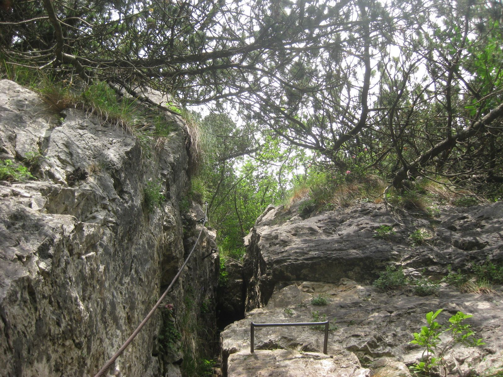 Dopo aver raggiunto in auto l’abitato di Crespano del Grappa si prosegue verso Possagno , arrivati in una rotatoria si prende per Fietta e si sale seguendo le indicazioni per San Liberale , si sale fino al rifugio San Liberale , si lascia l’auto e si imbocca il sentiero 151-153 si sale abbastanza rapidamente mantenendo la direzione 153 fino a trovare il bivio con la ferrata , il sentiero di avvicinamento e molto difficile , con una pendenza notevole , ma nello stesso tempo molto bello prettamente boschivo ed in ambiente selvaggio , questo diciamo che e uno dei problemi principali di questa ferrata , arrivati all’attacco della via la ferrata si presenta subito con la sua notevole verticale , il primo camino che da un esame più accurato e pieno di appigli in una roccia molto dura quasi dolomitica , non c’è che dire una ferrata molto bella soprattutto per queste creste situate nel bel mezzo della valle con i fianchi a strapiombo sul resto della valle , le sue creste affilate permettono una visuale interessante anche nel tratto prativo , proseguendo i tratti attrezzati si alternano con tratti prativi più o meno difficili ma tutti accessibili e con molti appigli , il secondo e semplice quasi a scalini , mentre nel terzo ci si deve fidare agli appigli molto resistenti e quasi a incastrarsi nella roccia per poi superare il tratto , superata la selletta del candidato si incorre ad un pezzo un po più complesso per la mancanza di appigli per i piedi ma con slancio atletico si va a superare in sicurezza anche questo , poi sempre salendo si trova un tratto interessante e da passare con cautela si nota una staffa a U per poi salire in un ampio incastro e ricercare un valido appoggio per il piede , poi risalendo sempre più in alto si inizia ad intravedere un pezzo del Sacrario del Grappa , dopo aver fatto l’ultimo tiro in verticale si raggiunge il bivio con il sentiero 152 che porta nel forcellino situato tra il monte Boccaor e il monte Meatta , a quota 1478 metri , solo per chi non volesse salire sul ponte Tibetano che collega i due pezzi della ferrata , e come ultima una parete dritta anch’essa raggirabile per concludere questa bellissima ferrata , non proprio per tutti che richiede preparazione fisica e anche esperienza in simili vie . Concludo con il fatto che il Monte grappa e stato teatro di grandi e cruente battaglie , ed e con profondo rispetto per le migliaia di vittime che si sale in questo che fu baluardo d’Italia