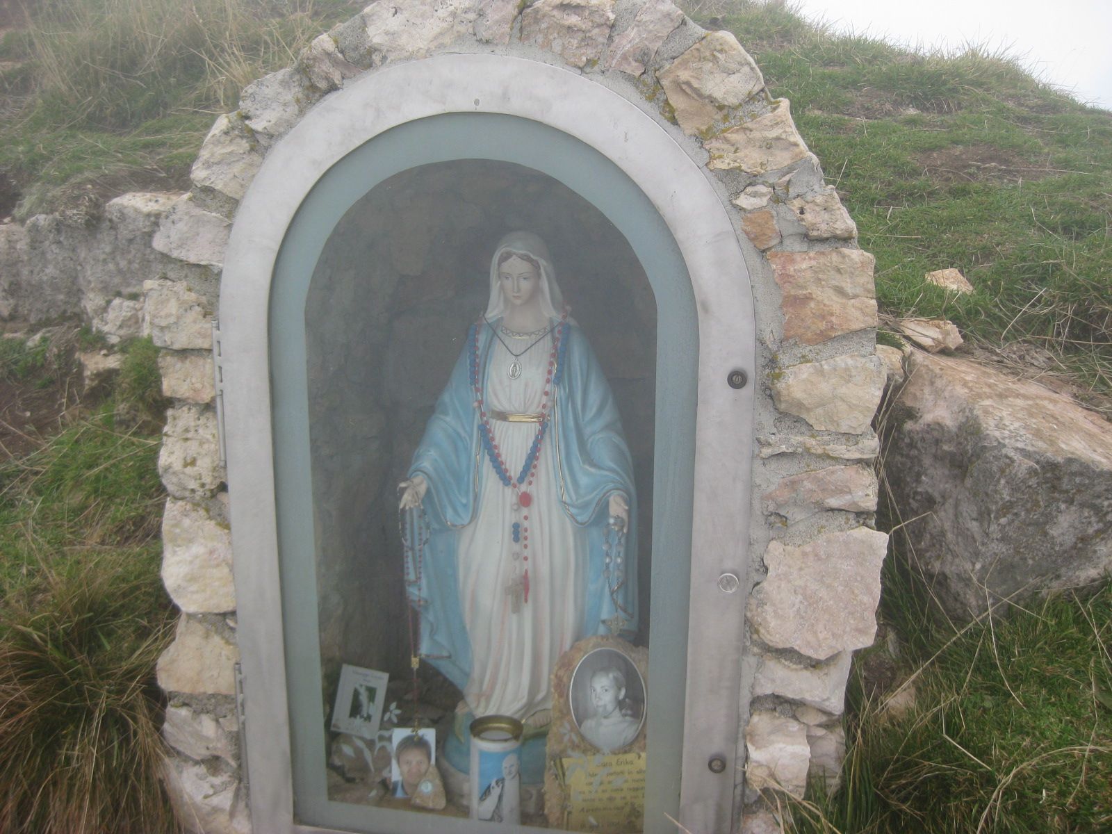 - Al centro dell’ossario italiano c’è il sacello della famosa Madonna del Grappa, la vergine ausiliatrice posta nella vetta il 4 agosto 1901 dal patriarca di Venezia Giuseppe Sarto (poipapa Pio X), a simbolo della fede cristiana nel Veneto. Durante la prima guerra mondiale, la Madonna del Grappa divenne simbolo della Patria e della protezione divina, al punto che una volta riparata dall’esplosione di una granata, prima di esser riposta nel sacello (4 agosto 1921) fece il giro dell’Italia su un vagone ferroviario al cui passaggio tutti lanciavano fiori, pregavano, piangevano, si inginocchiavano.