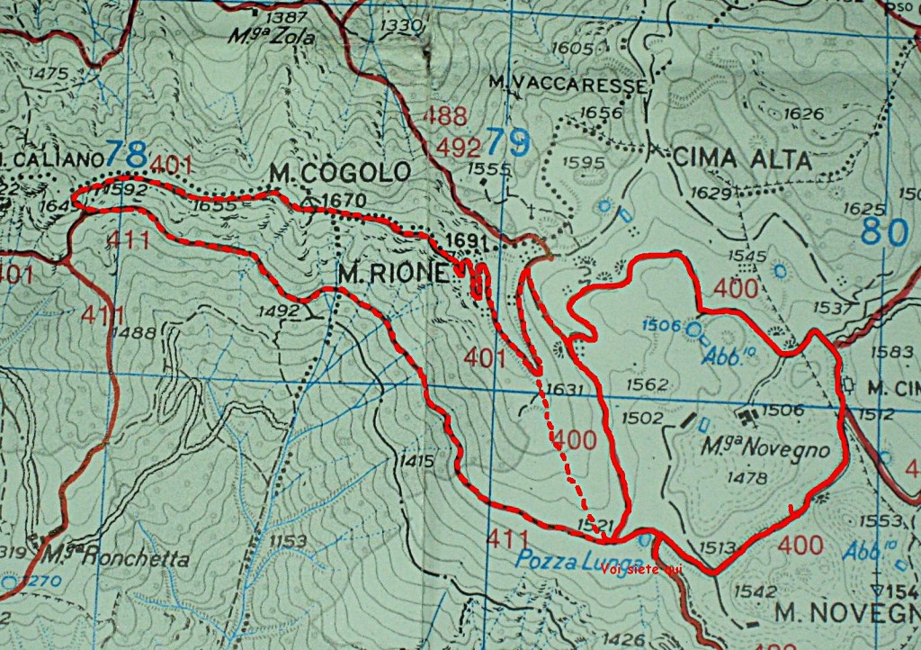 Ultimo giorno di Maggio: la linea italiana, difesa nella zona del Novegno dalla 35a Divisione e dalla 9a Div. più a Est, corre dalla cresta di questo per scendere fino a passo Campedello e risalire al trincerone di Monte Giove, di fronte al Priaforà. Da qui la linea corre sulla sommità dei Colletti di Velo per entrare in Val d’Astico davanti al paese di Velo d’Astico, abbandonato.