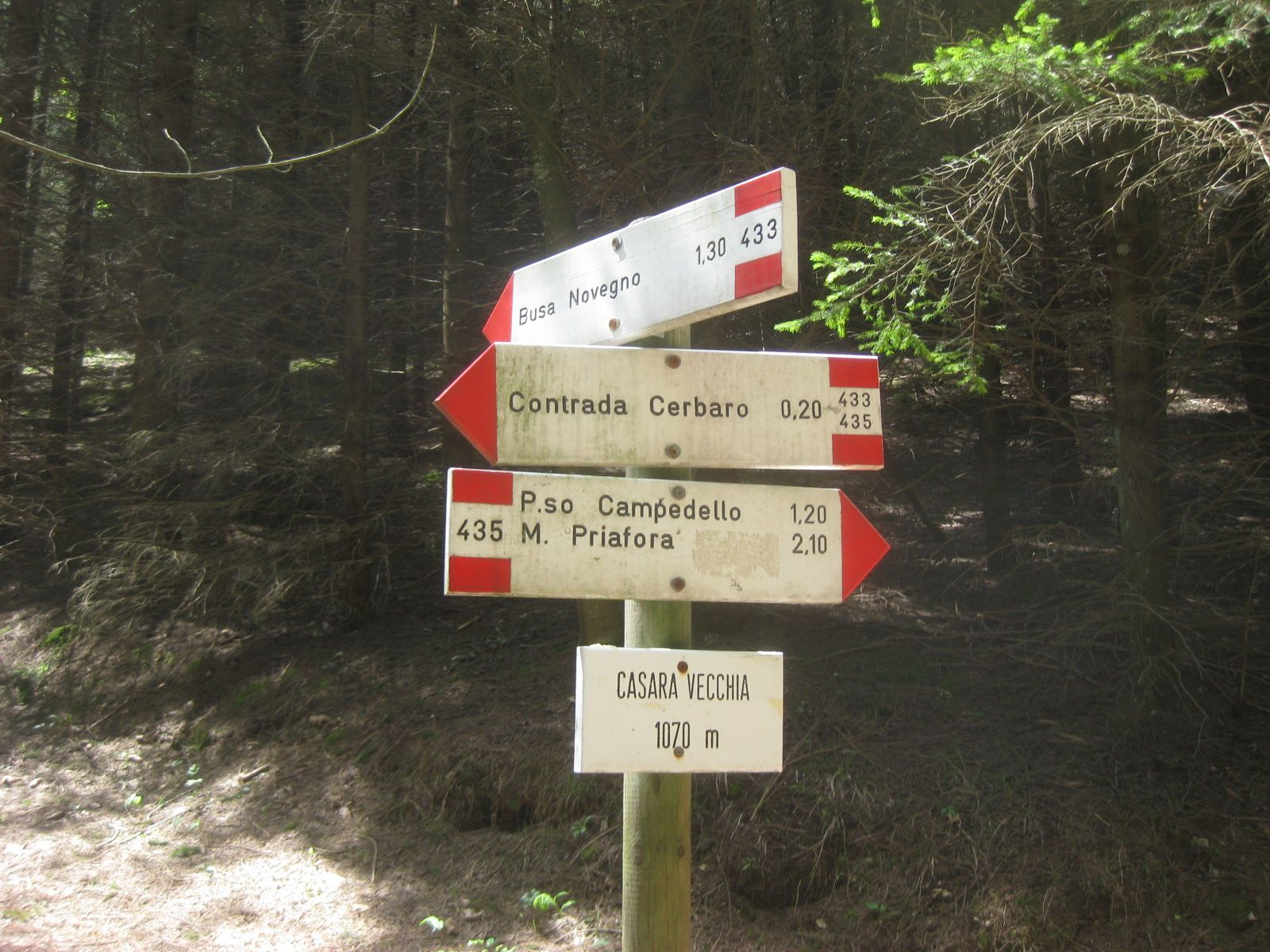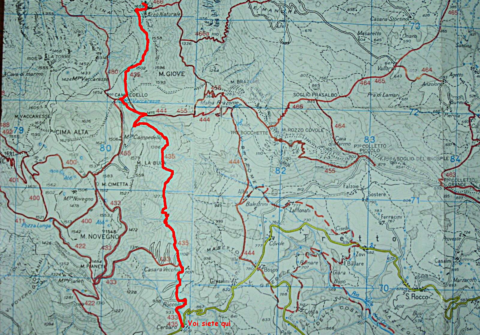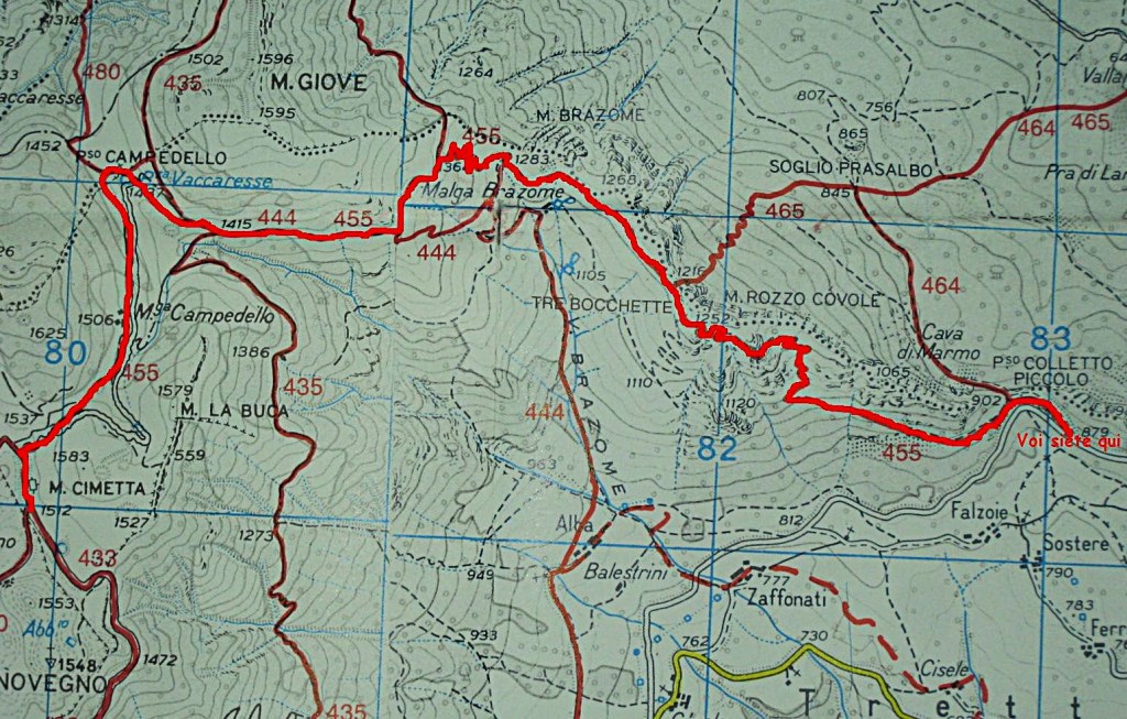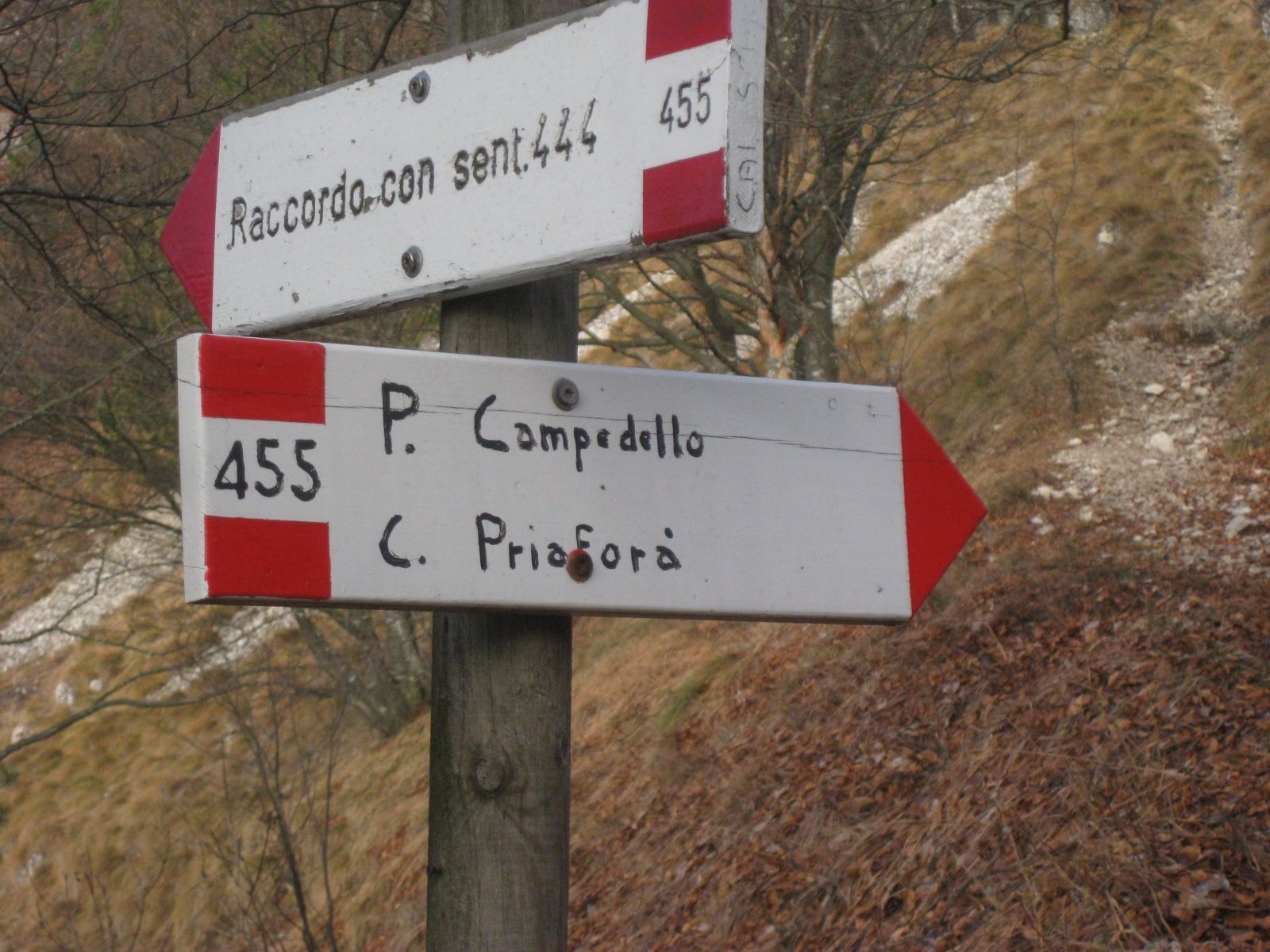 Giunti a Cerbaro si mette l’auto nell’ampio posteggio e si procede verso il campeggio a sinistra passato l’agriturismo si nota la carrareccia che porta a Passo Campedello e monte Priaforà.