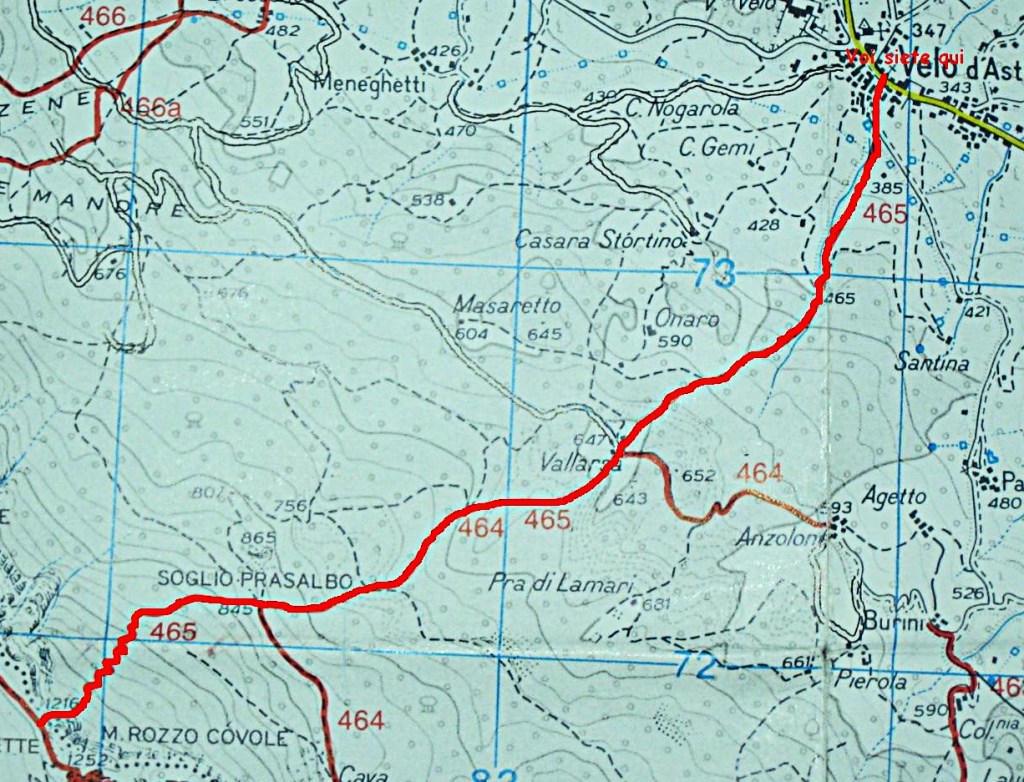Quindi la linea prosegue per il fondo valle fino alla frazione Seghe di Velo e, passato l’Astico al ponte di Schiri, risale le pendici di Monte Cengio.