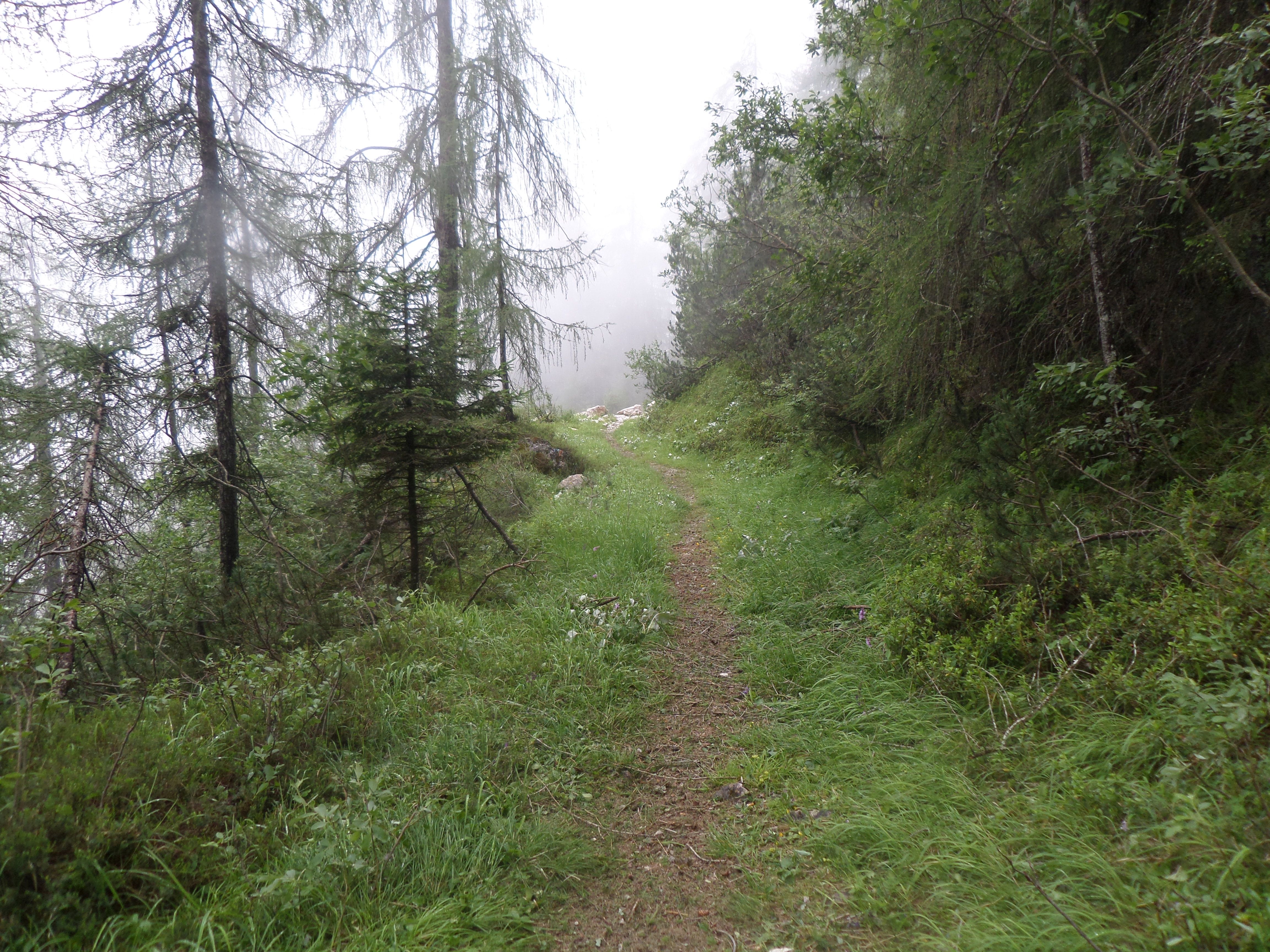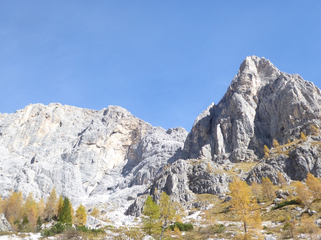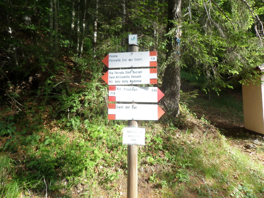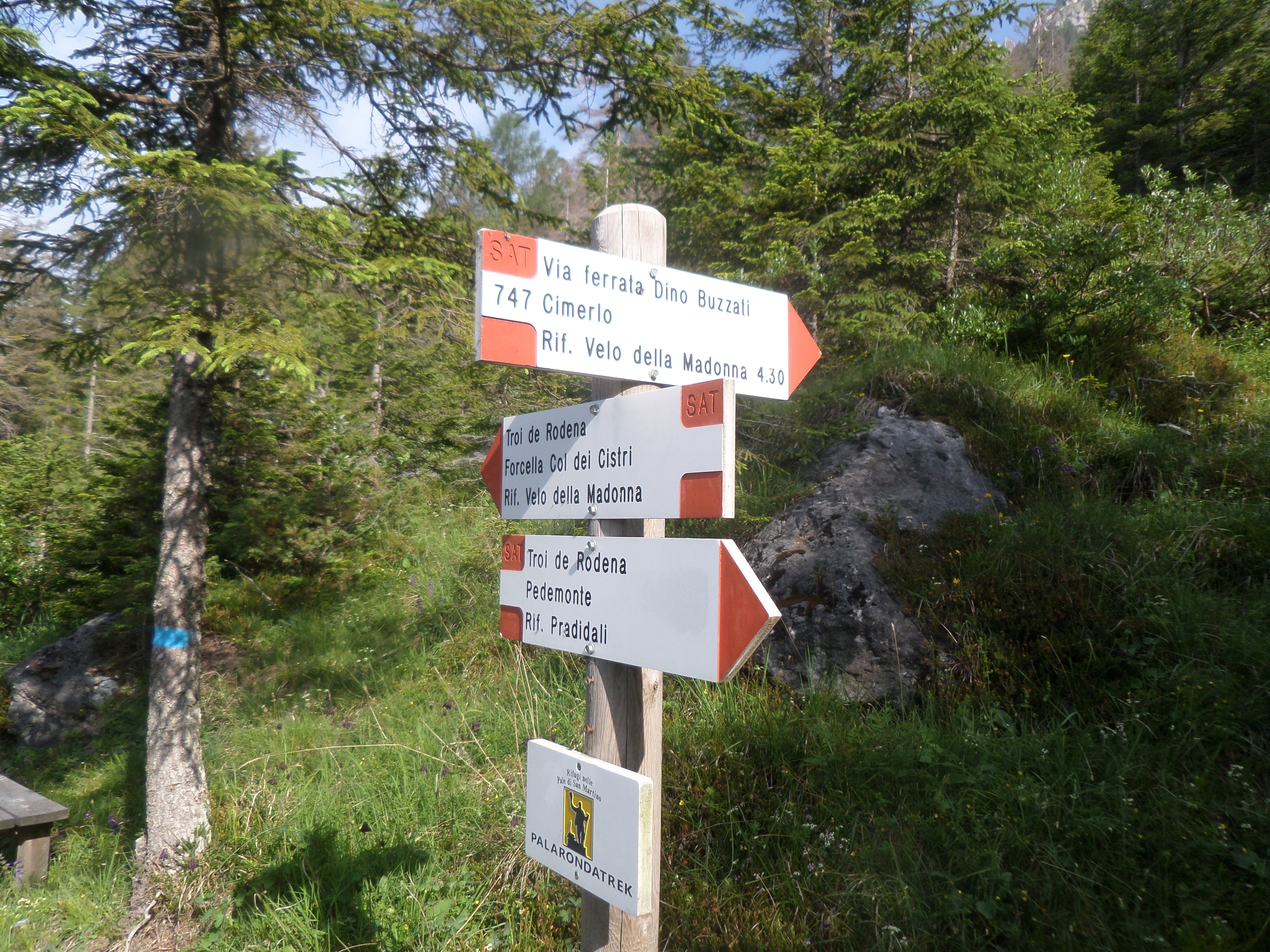Eccomi pronto a partire anche se fortemente in ritardo , ore 8.30 , località Chalet Piereni a quota 1200 m, un bel chalet tutto in legno anche con posti letto ideale per partire anche dopo averci dormito , imbocca una prima stradina di fianco ed inizio a salire lievemente prima in un bosco poi in alcuni pascoli aperti con baite di una bellezza unica , proseguo piano quasi a respirare un aria diversa ma soprattutto un ambiente nuovo , l’itinerario era chiaro in mente o per lo meno dove sarei voluto andare e passare, ad un certo punto il sentiero sale con una ripidità quasi verticale , del resto così si leggeva nelle cartine il tempo di percorrenza era un pò folle 5 ore per arrivare alla mia prima tappa , rifugio Velo della Madonna 2358 m , mi fermo a mangiare dopo averci impiegato 4h in quel fantastico percorso di guglie e di pareti scoscese e canaloni giganteschi