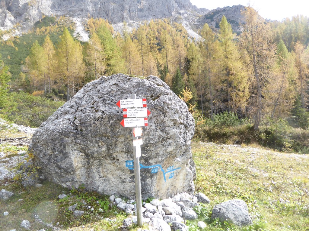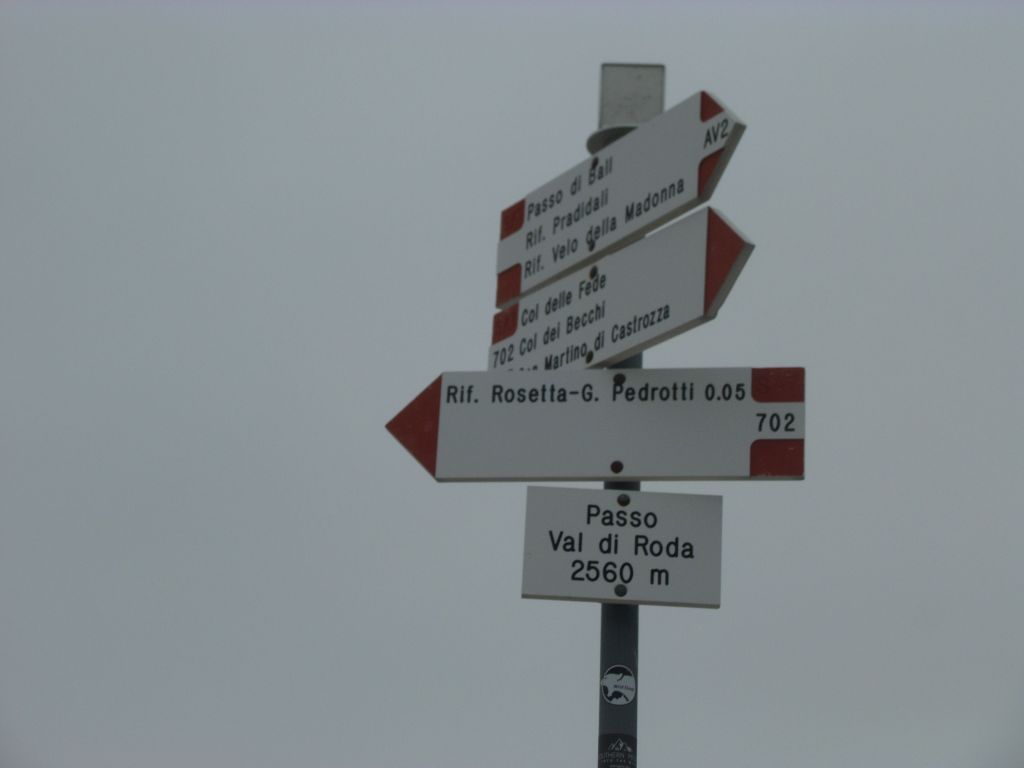 Questo itinerario ci porterà sempre sul Rifugio Rosetta Pedrotti , attraverso il Passo di Val di Roda e raggiungendo cosi poi il Rifugio , il sentiero percorre una prima parte su una carrabile che porta anche all’imbocco dapprima del n.725 del Cacciatore e poi il n.724 della strada forestale che porterà a raggiungere il n.721 che salirà fino al Rifugio Velo della Madonna . Ma per ora a noi interessa salire il sentiero n.702 forse uno dei più belli dellle Pale accesisbile a tutti i buoni camminatori , con panorami e scorci che donano emozioni continue, raggiunto il primo bivio si sale in maniera abbastanza severa, anche se i zig zag attenuano la fatica ed i passaggi tra abeti , pini e larici lo rendono molto piacevole fino a raggiungere la serie di tornanti su terreno detritico che ci porterà nel Col de Bechi a quota 2048 m. in un tratto prativo che ci permette di ammirare il versante opposto delle Pale, ovvero le piste da sci di San Martino di Castrozza, il zig zag ora procede su roccie detritiche e sale ripido fino ad incrociare il sentieroche a destra porta sul passo di Ball attraverso il n.715, mentre a sinistra dapprima ci porterà al Col della Fede 2780 m. poi sempre sul 702 attraverso un sentiero con molti tornanti in un terreno ostico e roccioso, passando sotto la Croda di Roda si raggiungerà il passo Val di Roda 2560 m. e successivamente il pianoro del Rifugio Rosetta Pedrotti. Lo scenario lunare delle Pale di San Martino è qualcosa di una bellezza unica ed ineguagliabile. La salita anche se severa e difficile porta in un luogo indefinibile sotto il profilo panoramico e della maestosità delle sue creste e cime che intorno al rifugio Rosetta , al ghiacciaio della Fradusta .