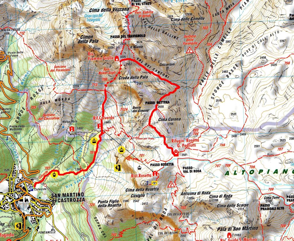 Rifugio di Appoggio: Rifugio Rosetta 2581 m-Rifugio Pradidali 2278 m-Chalet Piereni 1250 m